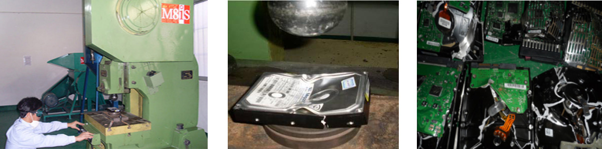 4、沖壓:沖壓服務(wù)是我公司為消除客戶的對消磁后是否能完全清除機(jī)密信息,確保信息不能再恢復(fù)的懷疑,利用沖壓機(jī)將存儲介質(zhì)再進(jìn)行物理銷毀,改變其物理結(jié)構(gòu),使其徹底報(bào)廢。