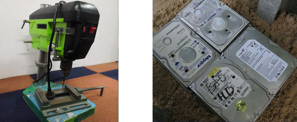 3、打孔:在客戶現(xiàn)場消磁后,消除客戶對消磁后是否能完全清除機(jī)密信息,確保信息不能再恢復(fù)的懷疑,利用打孔機(jī)將存儲介質(zhì)再進(jìn)行物理損壞,改變其物理結(jié)構(gòu),使其徹底報(bào)廢。