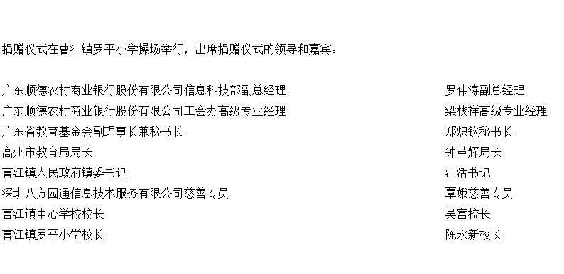 2021年,廣東順德農(nóng)村商業(yè)銀行股份有限公司向廣東省教育基金會捐贈一批綠色愛心電腦,經(jīng)深圳八方園通信息技術(shù)服務有限公司專業(yè)技術(shù)人員組裝成392套標準電腦。今年4月已向肇慶市廣寧縣、清遠市連南縣9所小學捐贈208臺綠色愛心電腦。此次再向茂名高州市曹江鎮(zhèn)2所學校捐贈82臺綠色愛心電腦,其中羅平小學41臺、中心學校帥堂校區(qū)41臺,為鄉(xiāng)村教育事業(yè)做出巨大貢獻。