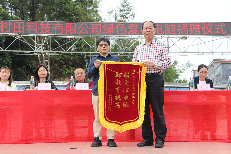 何杏平先生向馬水中學(xué)贈送“綠色愛心電腦教室”牌匾