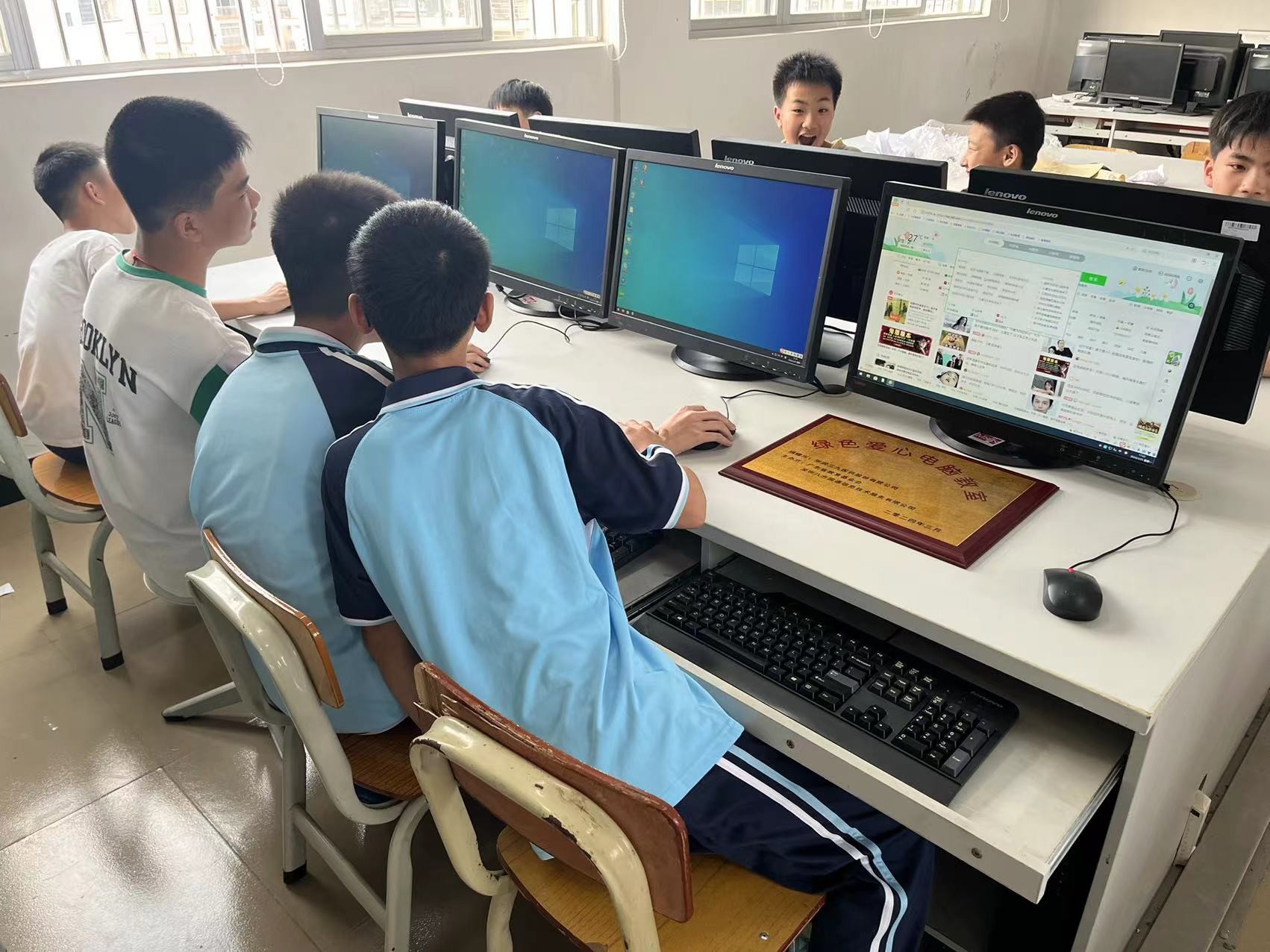學(xué)生們正在使用華潤(rùn)三九醫(yī)藥股份有限公司捐贈(zèng)的愛(ài)心電腦上課