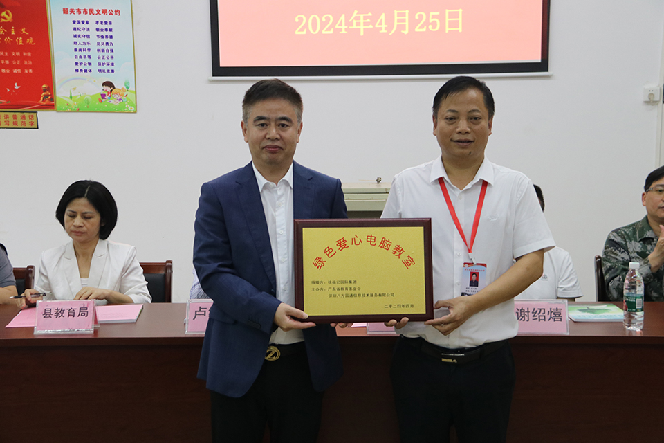 高衛(wèi)東總監(jiān)向梅坑鎮(zhèn)中心小學(xué)贈(zèng)送“綠色愛心電腦教室”牌匾