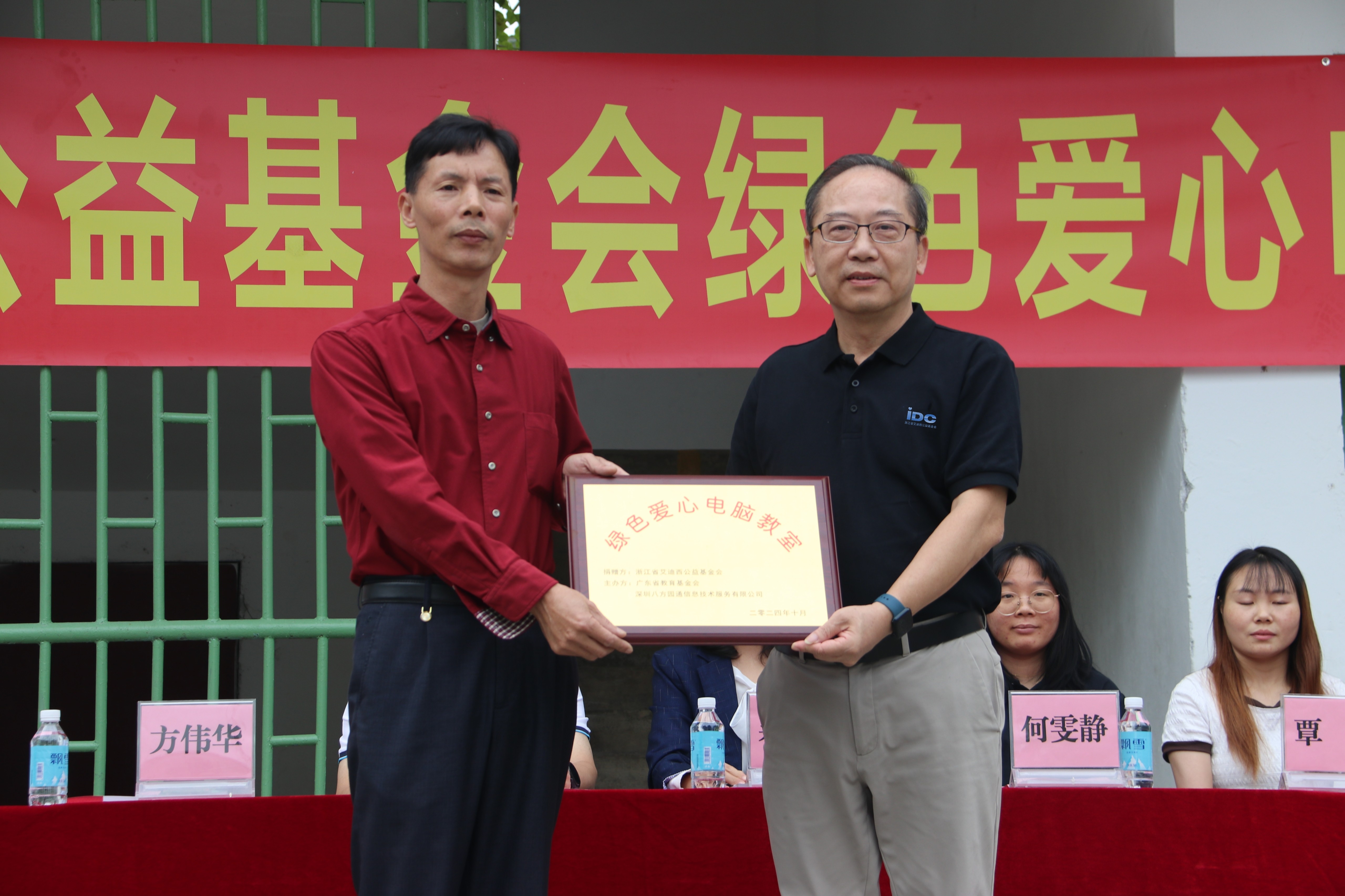 方偉華先生向水石教學(xué)點贈送“綠色愛心電腦教室”牌匾
