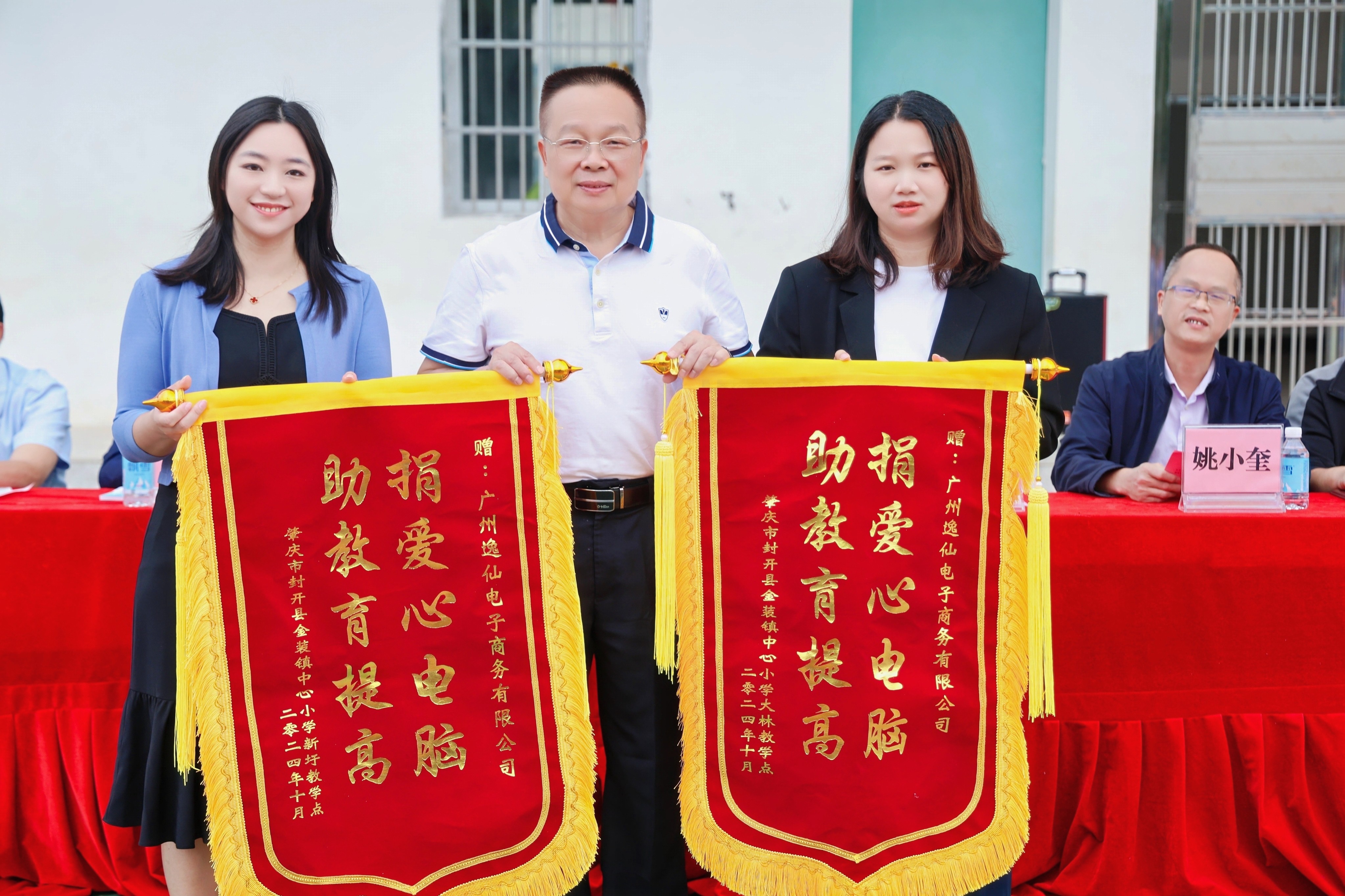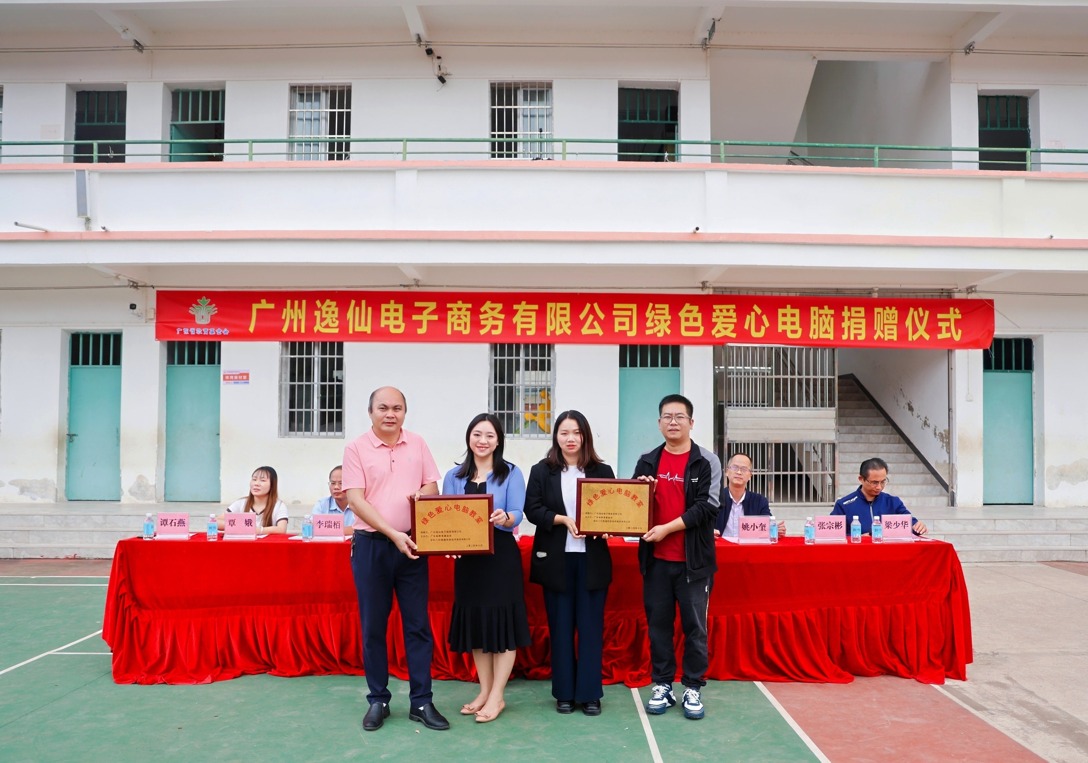 廣州逸仙電子商務(wù)有限公司向新圩教學(xué)點(diǎn)、大林教學(xué)點(diǎn)贈送“綠色愛心電腦教室”牌匾