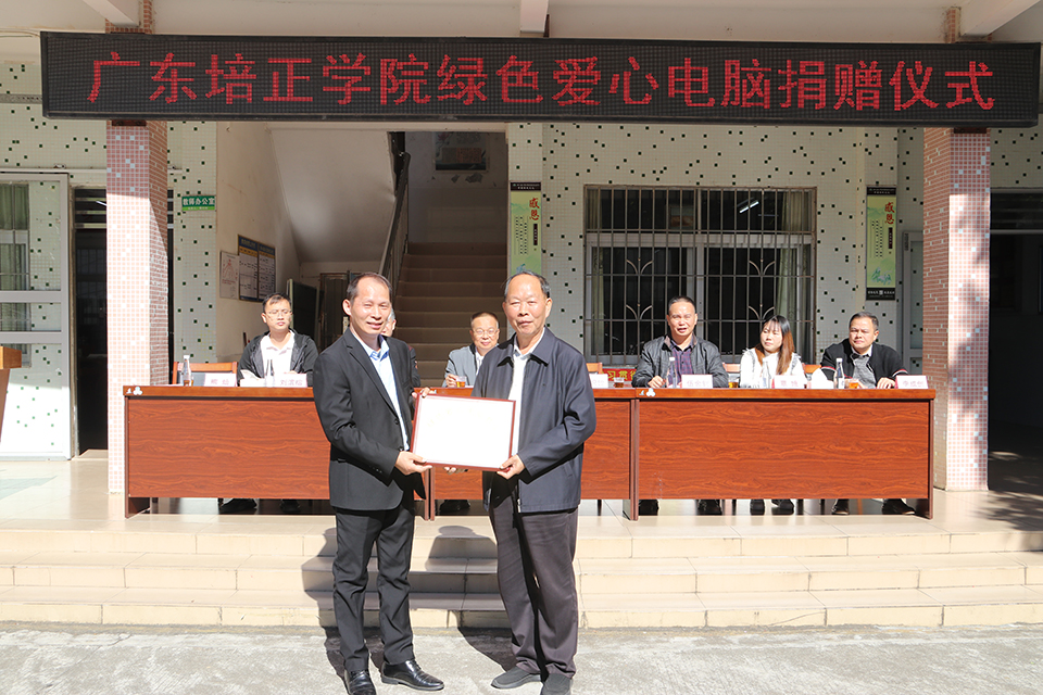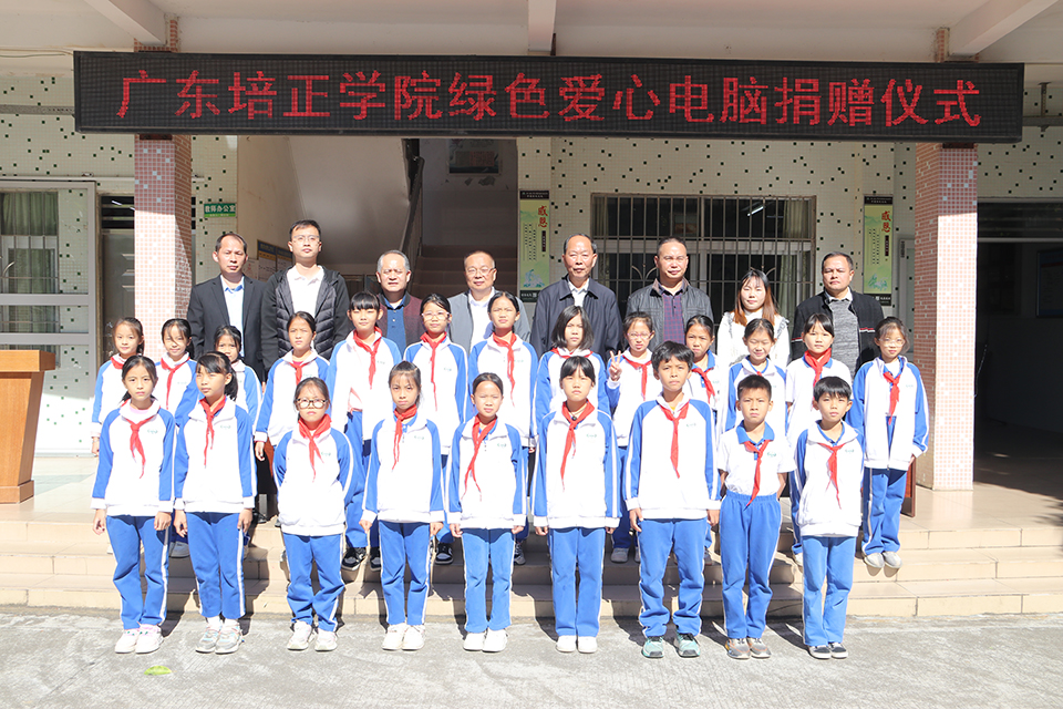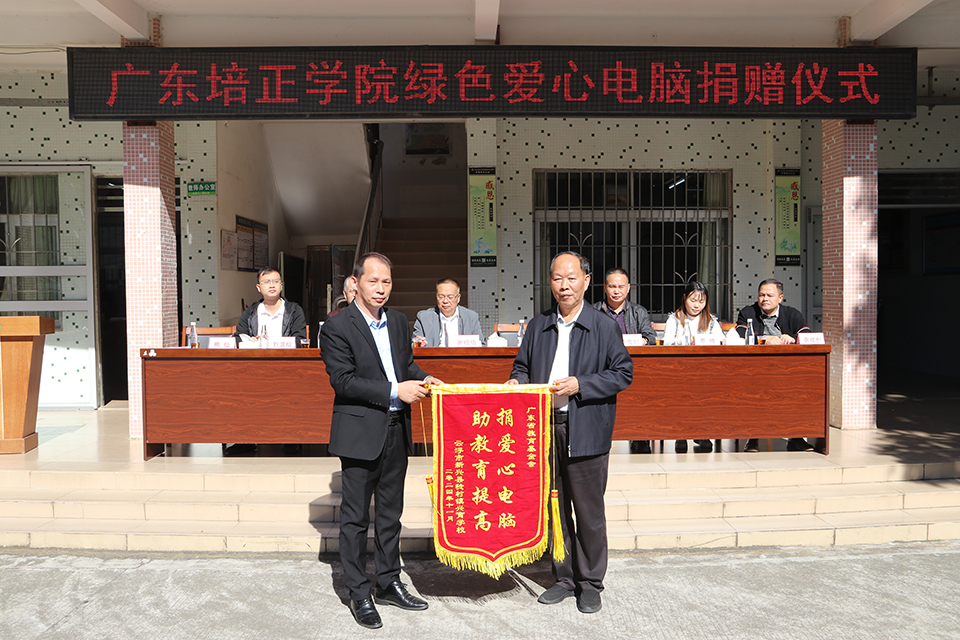 熊燦校長(zhǎng)向各位領(lǐng)導(dǎo)和嘉賓的到來(lái)表示最熱烈的歡迎,向慷慨捐贈(zèng)的廣東培正學(xué)院表示深深的感謝和崇高的致意。據(jù)介紹,興育學(xué)校有著光榮的革命歷史。在革命戰(zhàn)爭(zhēng)年代,秘密掩護(hù)中共黨員開展地下活動(dòng),在學(xué)校任教的黨員教師,注重向?qū)W生灌輸革命思想,培養(yǎng)革命人才,為革命工作輸送了100多位優(yōu)秀人才,為中國(guó)人民的抗日戰(zhàn)爭(zhēng)和解放戰(zhàn)爭(zhēng)作出了卓越的貢獻(xiàn),被譽(yù)為革命老區(qū)學(xué)校、新興的“革命搖籃”。廣東培正學(xué)院向興育學(xué)校捐贈(zèng)41臺(tái)綠色愛心電腦的愛心善舉,為學(xué)校的教學(xué)條件進(jìn)一步提升添磚加瓦。
