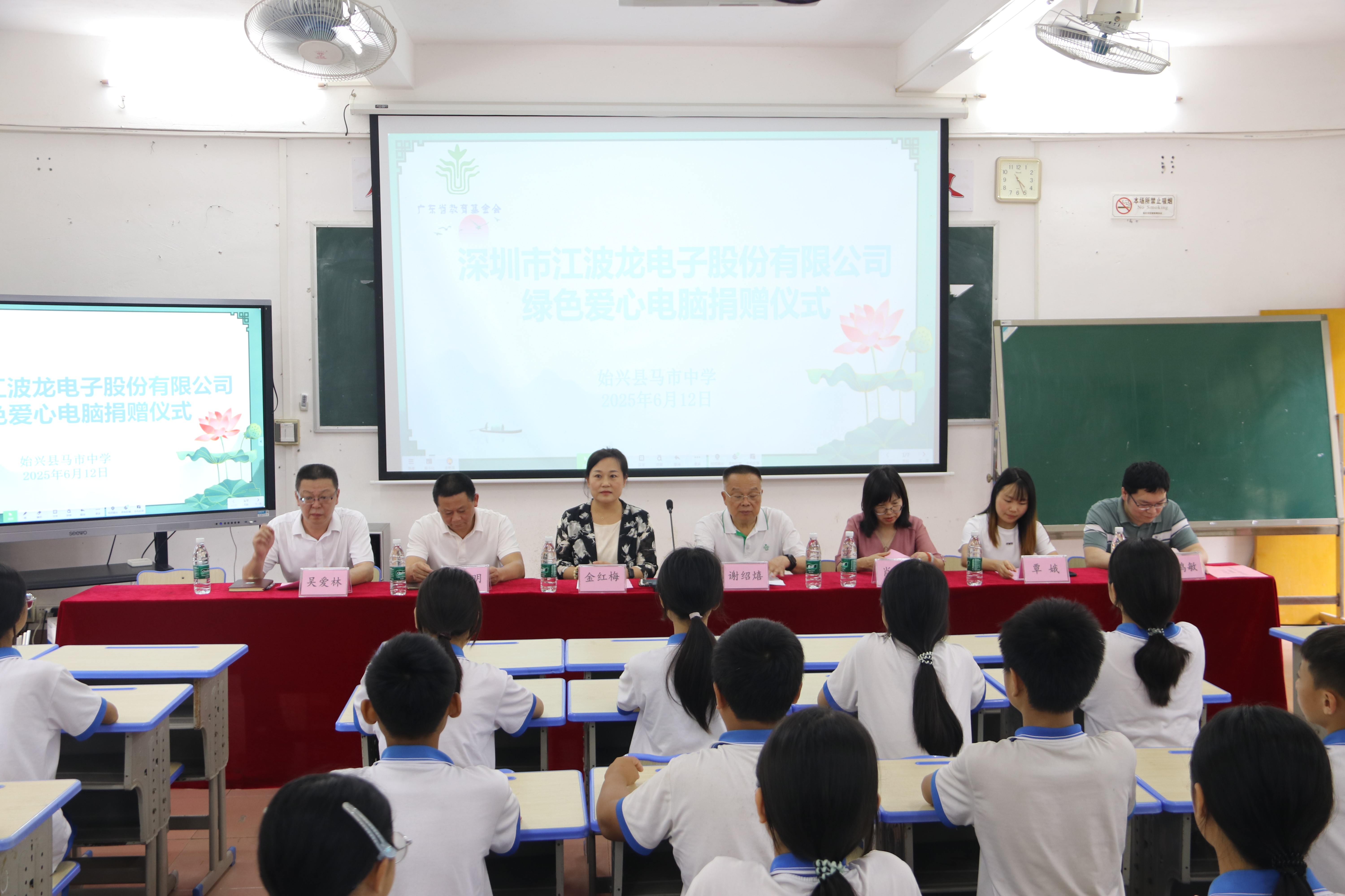 深圳市江波龍電子股份有限公司資產(chǎn)管理部負(fù)責(zé)人金紅梅、慈善項(xiàng)目負(fù)責(zé)人肖小霞,廣東省教育基金會(huì)副秘書長謝紹熺,始興縣教育局副局長何志明,深圳八方園通信息技術(shù)服務(wù)有限公司慈善項(xiàng)目負(fù)責(zé)人覃娥,始興縣馬市中學(xué)校長吳愛林,馬市中學(xué)師生代表參加了捐贈(zèng)儀式。