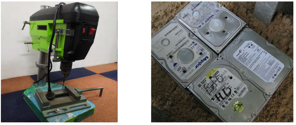 3、打孔:在客戶現(xiàn)場消磁后,消除客戶對消磁后是否能完全清除機密信息,確保信息不能再恢復(fù)的懷疑,利用打孔機將存儲介質(zhì)再進行物理損壞,改變其物理結(jié)構(gòu),使其徹底報廢。