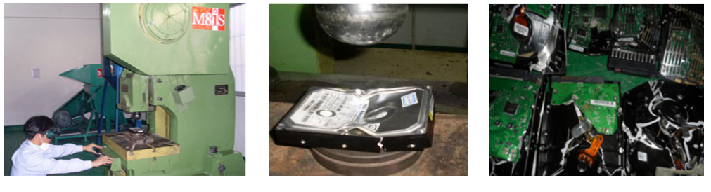 4、沖壓:沖壓服務(wù)是我公司為消除客戶的對消磁后是否能完全清除機密信息,確保信息不能再恢復(fù)的懷疑,利用沖壓機將存儲介質(zhì)再進行物理銷毀,改變其物理結(jié)構(gòu),使其徹底報廢。